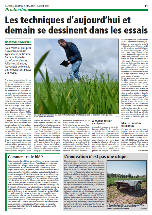 « Groupe Carré : l’innovation pour une agriculture durable » - L’ACTION AGRICOLE PICARDE