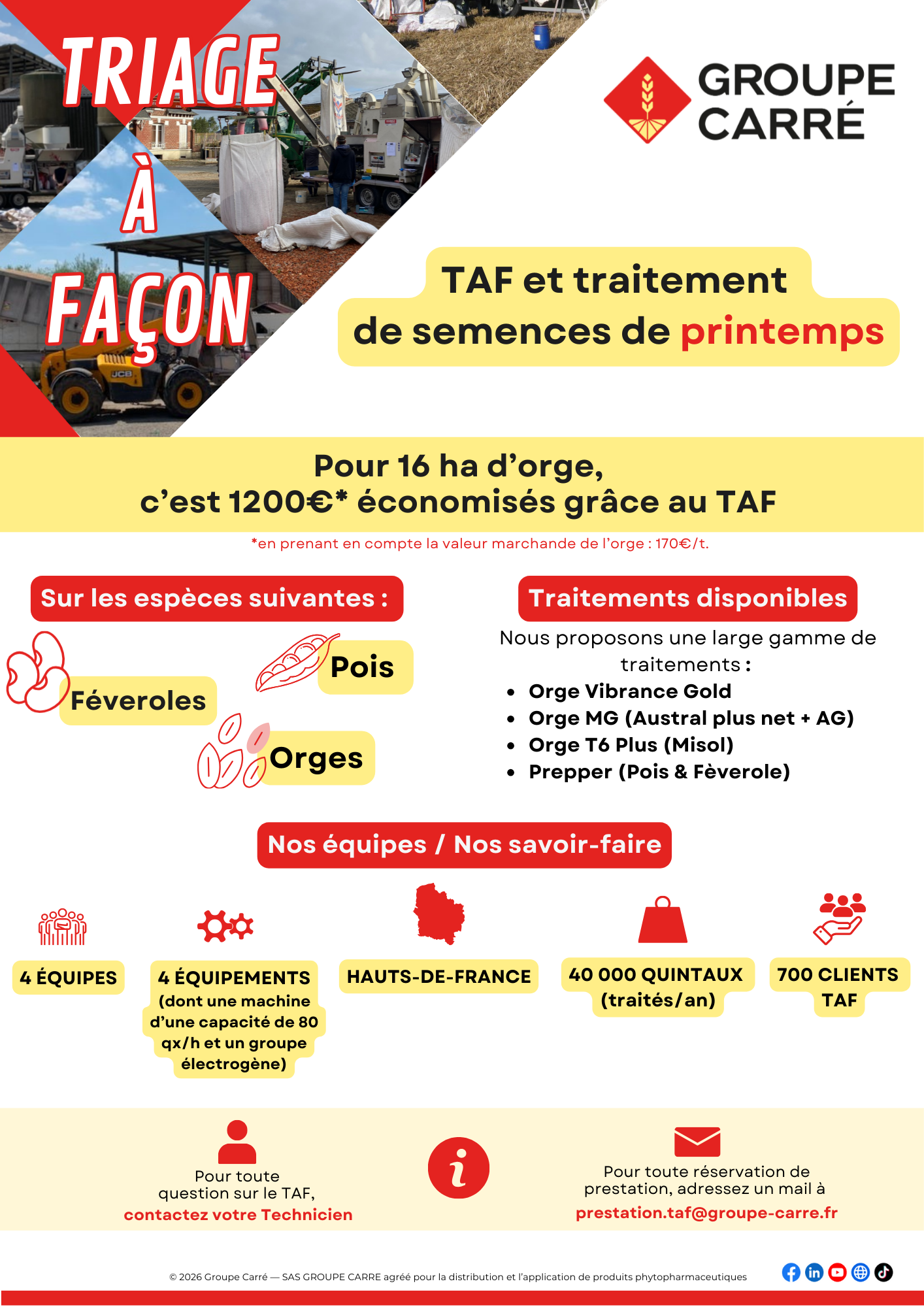 Pour 40ha de blé et 16 ha d’escourgeon, c’est 3500€* d’économisés grâce au TAF
